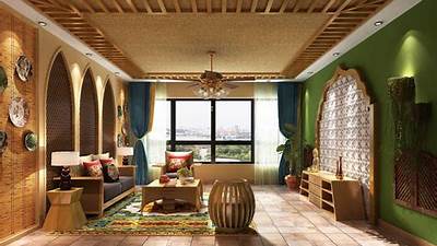 绿色植物的点缀是营造东南亚热带氛围的有效手段。我们可以选择一些适合室内种植的绿色植物,如吊兰、绿萝等,将其摆放在客厅、卧室等空间中,以增加空间的生机和活力。