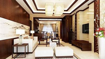 客厅:采用红木、青花瓷为主要材料,选用具有良好质量和耐用性的家具、装饰品等,增加整个环境的品质感。同时,在细节处加入一些传统元素如中国结、对联等,增加了整个环境的传统氛围。地面选用深色的木地板或瓷砖,与整个房间的风格相呼应,增加整个环境的稳重感。墙面上挂着中国画或字画作品,增加了整个环境的文化气息。在客厅中设置合适的灯具、灯饰等,使整个环境既具有传统文化气息又不失现代感。例如,可以在客厅中设置一盏柔和温馨的吊灯,增加整个环境的温馨感;同时,可以在墙上挂上一串古朴典雅的灯笼,增加整个环境的传统氛围。在客厅中加入一些绿植,增加整个环境的自然气息和活力感。