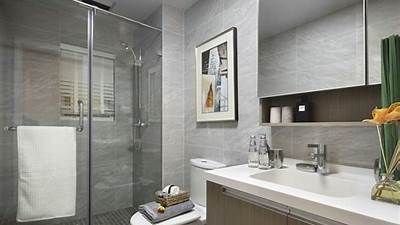 现代轻奢北欧风格的卫生间设计的墙面装饰要精致,可以从以下几个方面入手:
