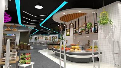 在进行超市装修设计时还需要注重灯光布局。合理的灯光布局可以为顾客提供更好的使用体验和便利性。比如,可以将货架设置在靠近入口的位置,以便顾客快速找到所需商品;也可以将收银台设置在出口附近,以减少顾客排队等待的时间。还可以根据商品种类和大小来合理规划灯光的高度和深度,以提高存储效率和空间利用率。